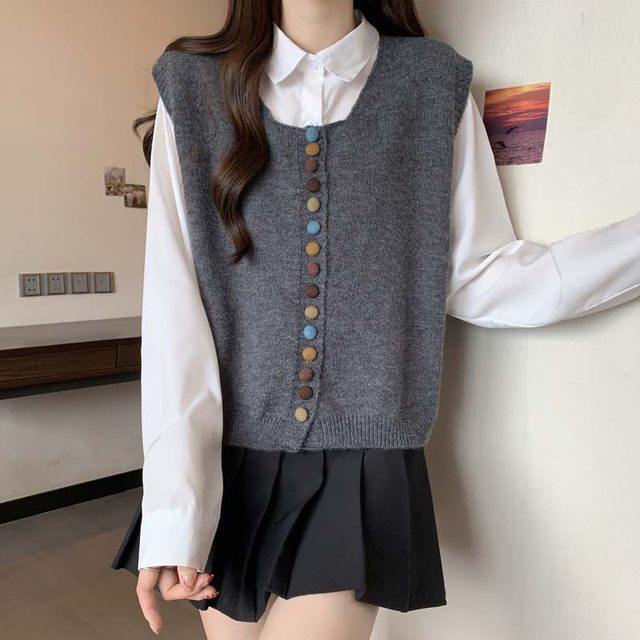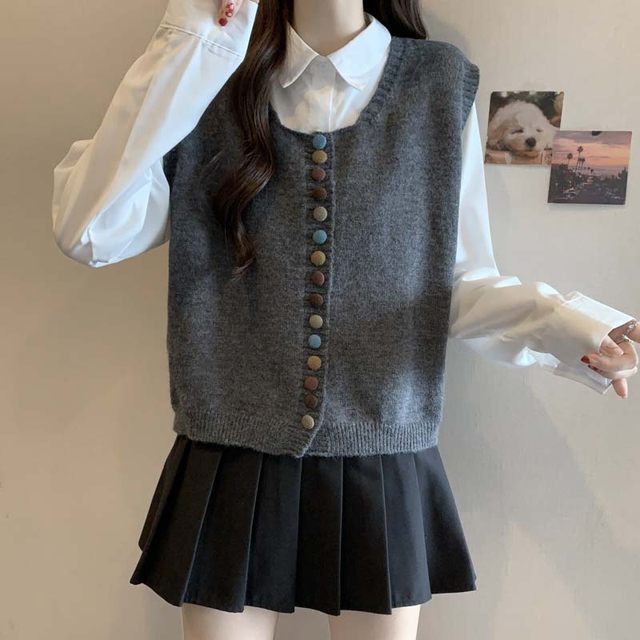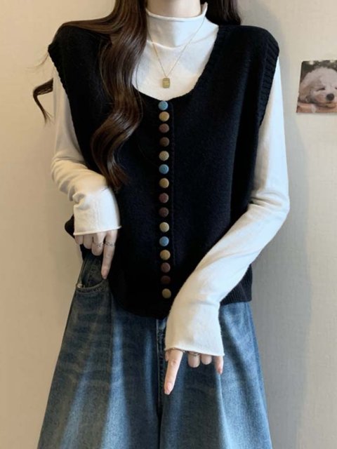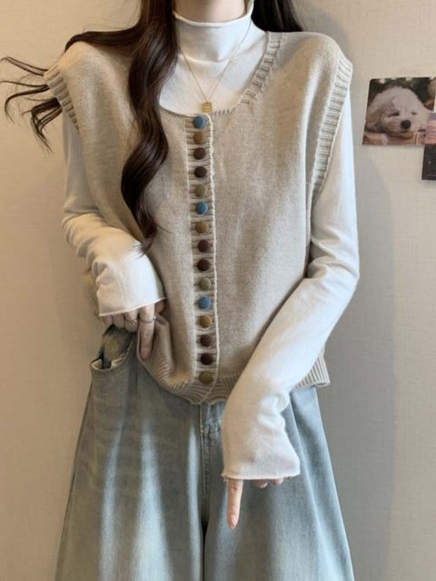 울100% 루즈핏 콩단추 조끼