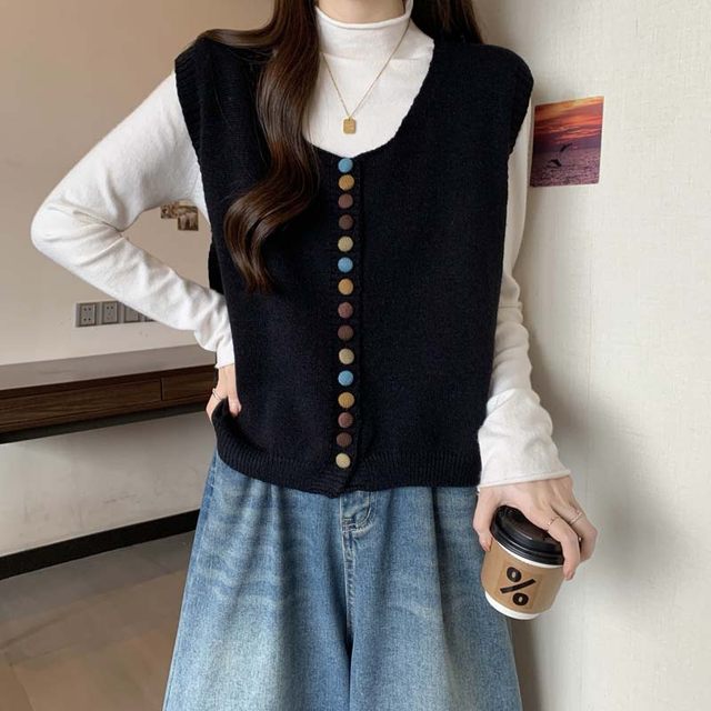 루즈핏 콩단추 조끼